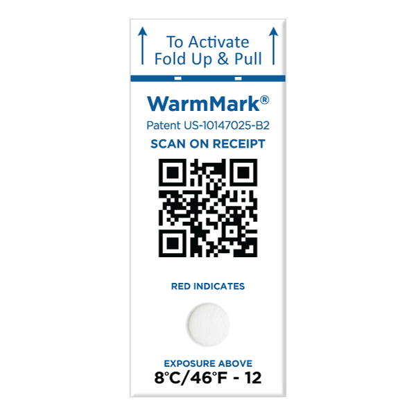 The WarmMark QR 8°C/46°F 12 Hour Single-Window Temperature Indicator is designed to enhance cold chain visibility for temperature-sensitive shipments. This single-use self adhesive temperature indicator monitors exposure to temperatures above 8°C (46°F) for up to 12 hours. Once activated, the indicator window will change color from white to pink/red, providing immediate visual evidence of a temperature excursion.